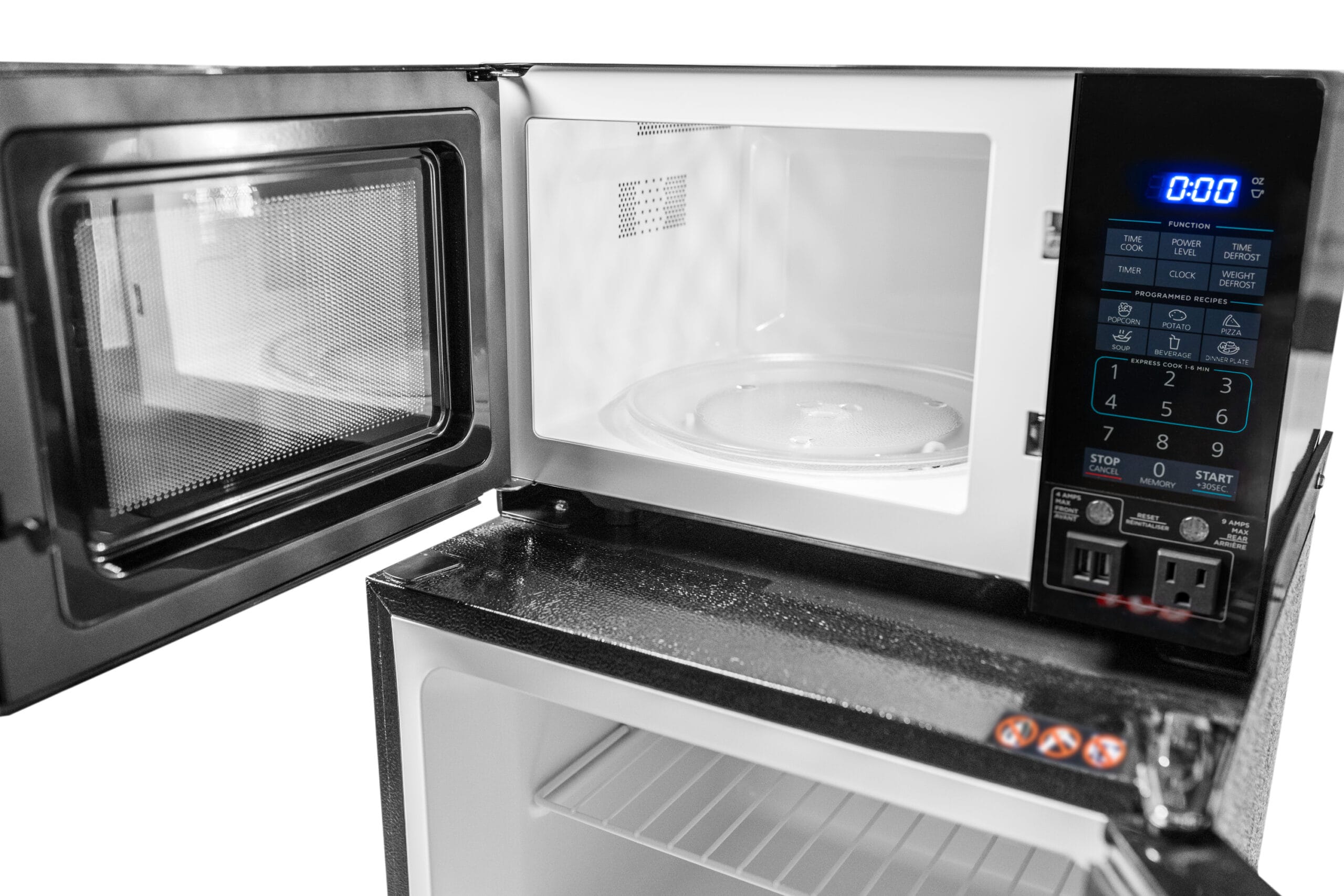 - Safe Plug Technology: Provides protection against circuit overloads for user safety and convenience. The Blue Plug on the back of the refrigerator plugs into the back of the microwave for energy efficient one-plug to the wall operation