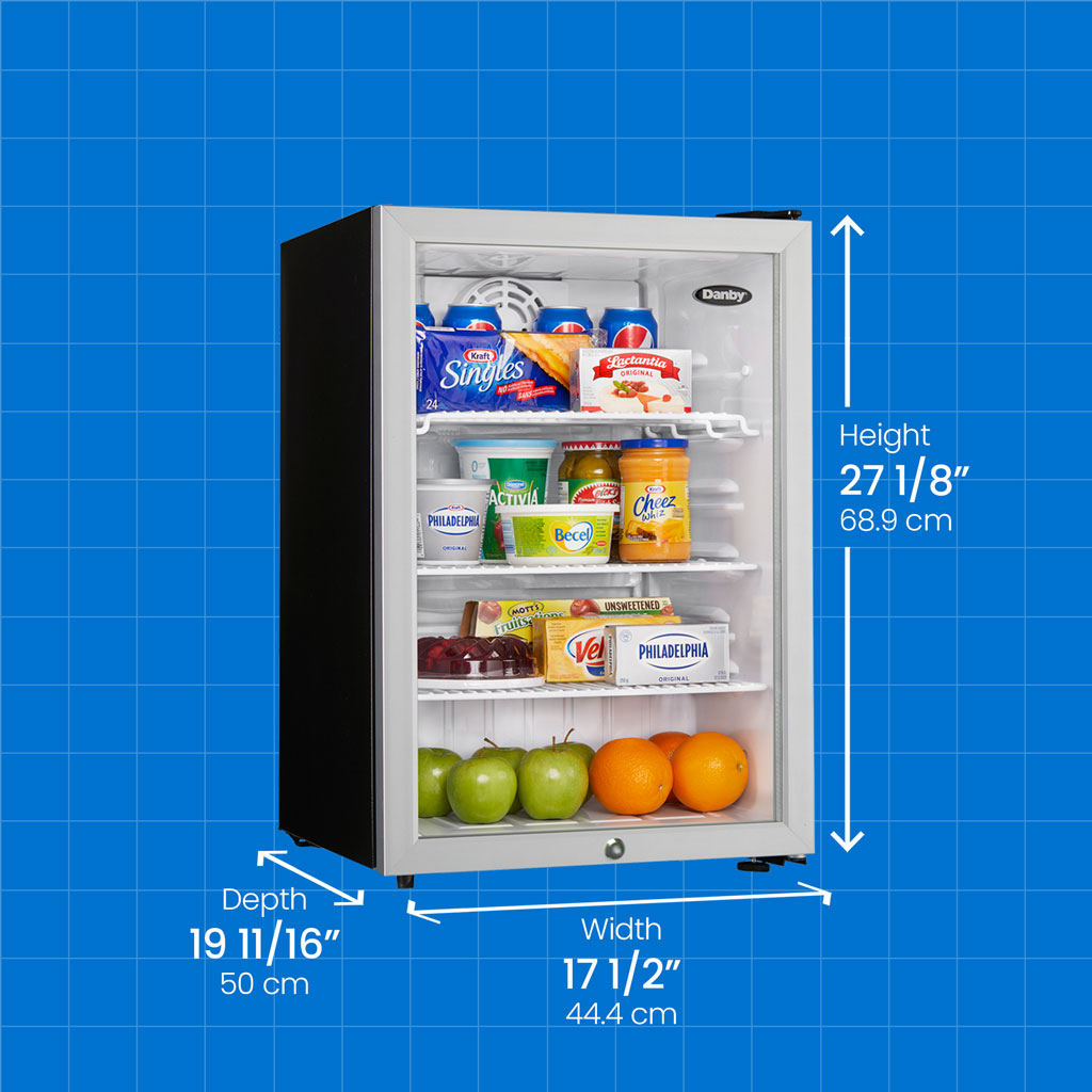 This commercial-grade Danby compact all-refrigerator features an elegant see-through glass door design with a stainless steel-like trim. Its ample storage space, interior LED light and commercial grade energy rating makes it the perfect addition for your guests.Specifications