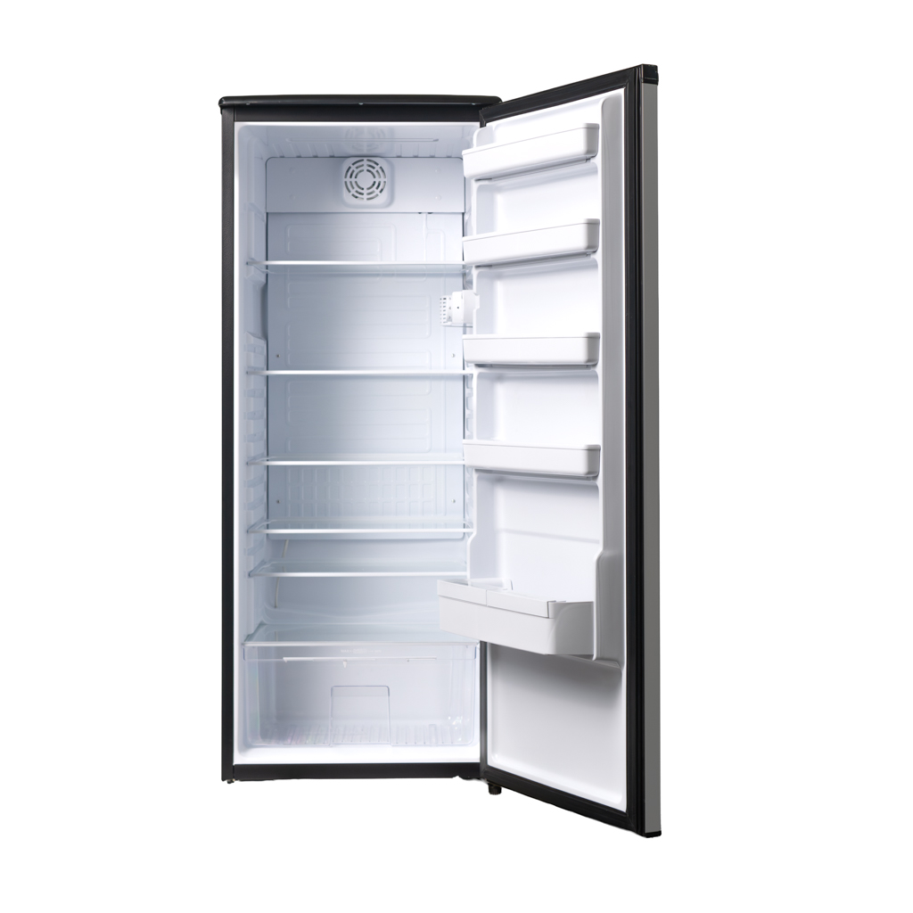 This Danby Designer model serves up 11 cubic feet (311 litres) of cool storage area and the prestigious ENERGY STAR® certified and high-tech mechanical thermostat means it will cut back on your power bills. The stylish appliance features a single door with an integrated handle and a clever reversible hinge which allows you to set it for right or left-handed opening. The neat and tidy interior is illuminated by a powerful lighting system which makes it easy to organize the glass-covered vegetable crisper, the integrated door shelves, and the four-and-a-half adjustable glass shelves. There’s considerable room for large and tall bottle and this top-of-the-line unit comes with a worry-free 18-month warranty on parts and labour along with convenient in-home service.Specifications