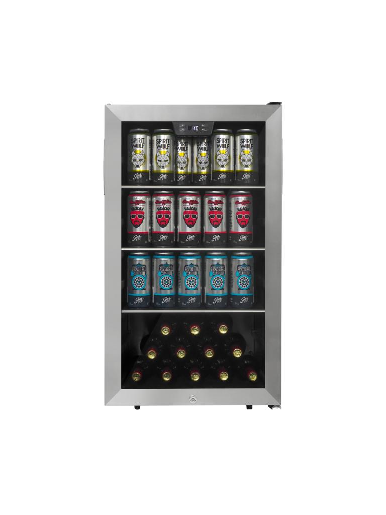 Whether you find yourself entertaining guests or needing more convenient refrigeration for your family, this supreme beverage center delivers style and practicality. This beverage center is perfect for kitchen organization and hosting in small spaces such as an apartment, condo, or cottage! Save fridge space for food or leftovers with this spacious unit offering 4.5 cubic feet (128 L) of cooling and storage space. Cool up to 115 (355 ml) beverage cans and up to 12 bottles of wine on three adjustable shelves that accommodate different-sized beverages. Designed with an adjustable electronic thermostat, this wine and beer chiller can be set anywhere between 34°F – 50°F (1°C -10°C). This small refrigerator also features a clever, reversible door hinge that enables you to adjust it for left or right-handed opening and features a lock to secure the contents. With its bright white interior LED light and sleek design, this model seamlessly blends with any décor style.Specifications