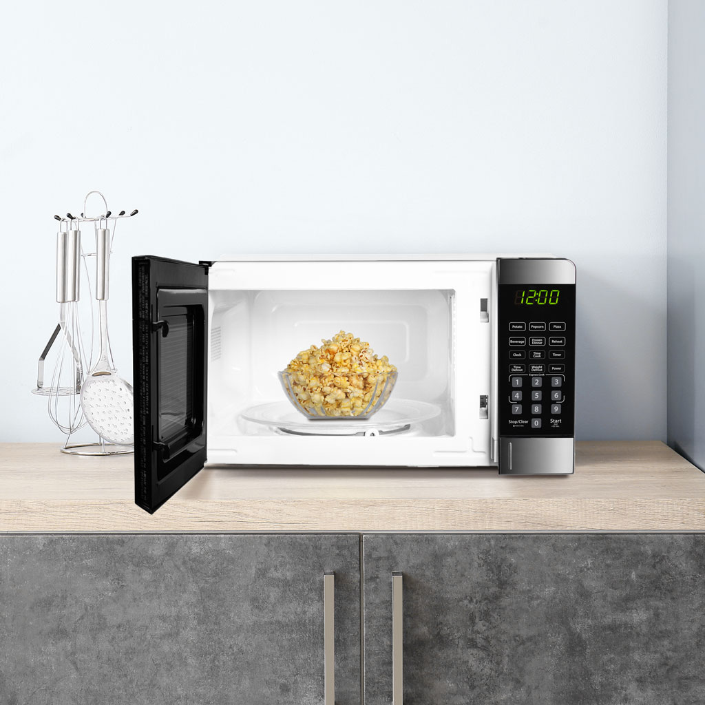 - 6 Convenient Auto Cook Options: Popcorn, Potato, Pizza, Beverage, Frozen Dinner, Reheat