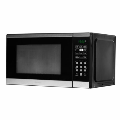 The Danby DBMW1126BBS 1.1 cu. ft. Countertop Microwave in Black and Stainless Steel combines sleek design with powerful performance. Its 1.1 cubic foot capacity and 900 watts of power, along with 10 adjustable power levels, handle various cooking tasks. It features 6 auto cook options for Popcorn, Potato, Pizza, Frozen Vegetables, Beverage, and Dinner Plate, simplifying meal preparation. Express Cook buttons offer immediate cooking from 1 to 6 minutes, and the Add 30 Seconds function extends cooking time easily. Auto Defrost Options allow defrosting by time or weight for optimal results. The Time Cook feature provides precise control by manually setting cooking time. For safety, the Child/Control Lock Out option locks the control panel with a 3-second press of the STOP button and includes a 2-step door safety lock. A 12-month warranty on parts and labor with carry-in service offers peace of mind.
