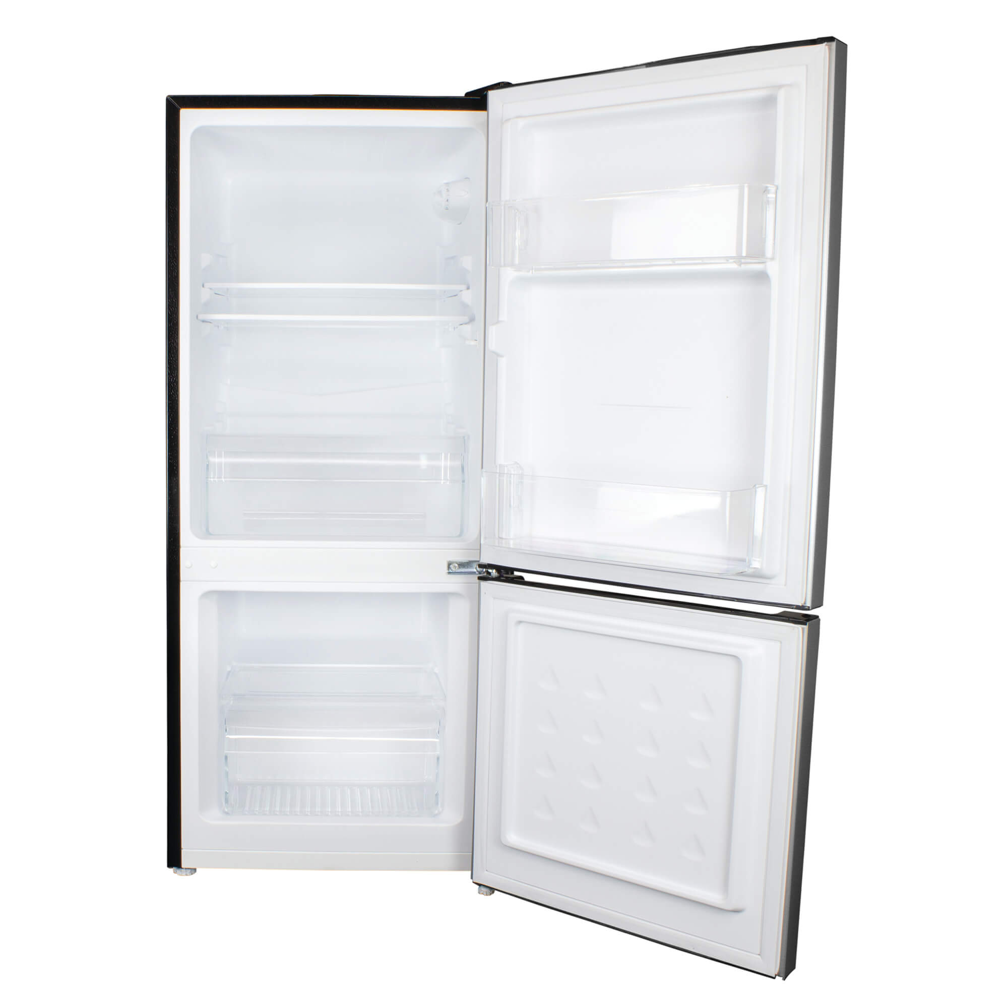 This modern and compact 4.1 cu. ft. bottom-mount mini fridge offers 3.07 cubic feet (87 L) of refrigeration space. It boasts a 1.06 cubic feet (30 L) bottom mount freezer section, making it the perfect fit for smaller kitchens, wet bars, and your new home office! There’s plenty of room for your lunch and snacks on the two full-width glass shelves in the mini fridge, and one shelf in the freezer. The bottom-mounted freezer section allows for more accessible space in the refrigerator while making it easier to find and grab your most used items. This fridge silencer technology operates at a quiet 37-decibel noise rating – perfect for a quiet study room. The reversible door hinge allows you to choose to have the door open left or right-handed, making it easy to place in any room. The integrated door shelving comes with tall bottle storage, and the silencer technology makes it a perfect companion for long days in the home office. This model is also ENERGY STAR® compliant and uses environmentally friendly R600a refrigerant.