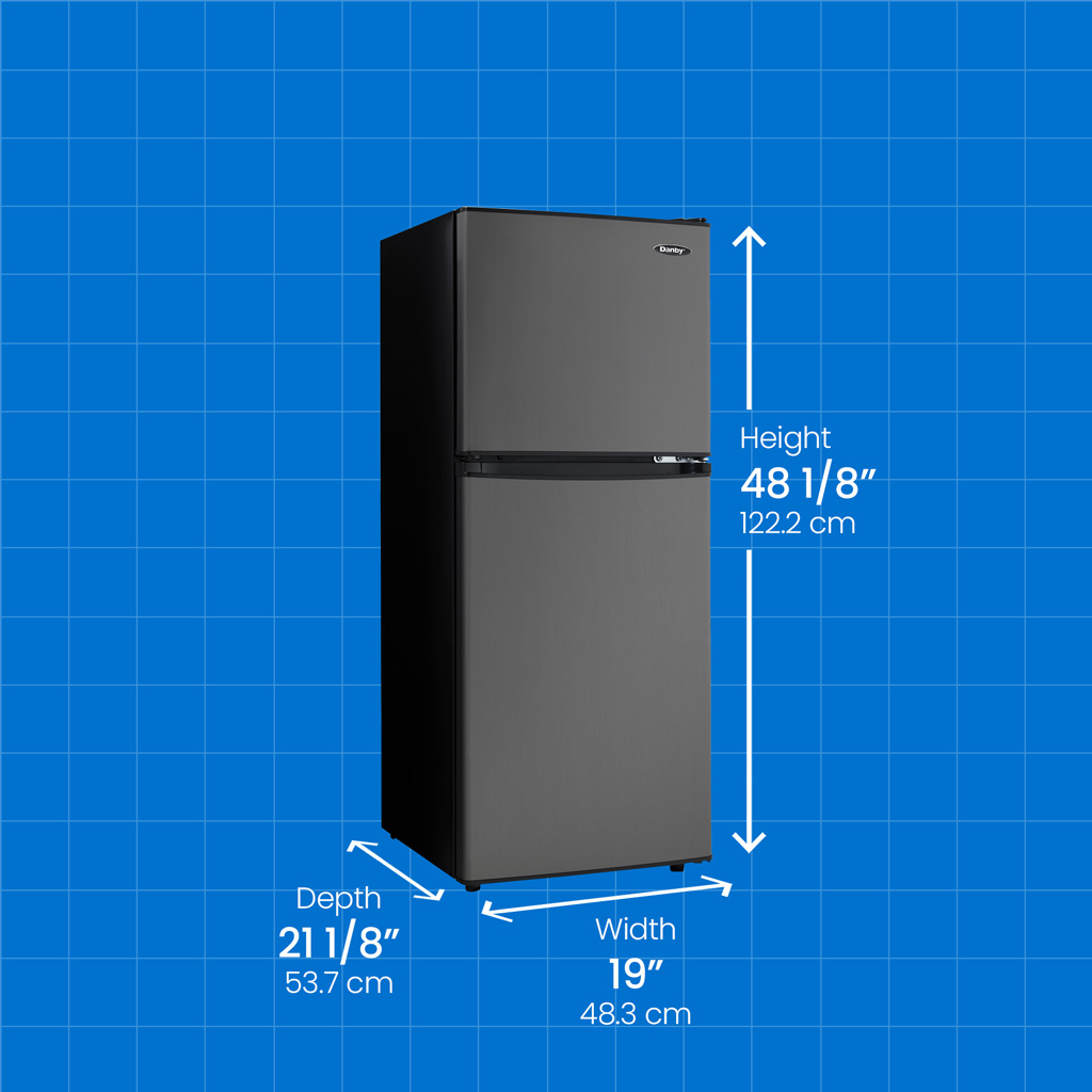 Having a separate fridge and freezer is certainly a handy component for an appliance. With this black stainless steel dual-door compact refrigerator by Danby you get that convenient combination and so much more. This model offers 4.7 cu. ft. (133 L) of cooling and freezing capacity in an Energy-Star® compliant component to help keep electricity costs as low as possible. This appliance is great for apartments, rec-rooms, bars, cottages and offices. The mechanical thermostat ensures your food is always stored at the correct temperature, and the freezer incorporates a manual defrosting system. It includes a reversible-door feature to adjust for either left or right-handed opening. Inside the appliance you’ll find a bright interior light as well as a see-through crisper with a glass cover, integrated door shelving for tall bottles, 2 full width glass shelves as well as 1 wire shelf in the freezer. This appliance includes a 12 month in-home service warranty on parts and labor.