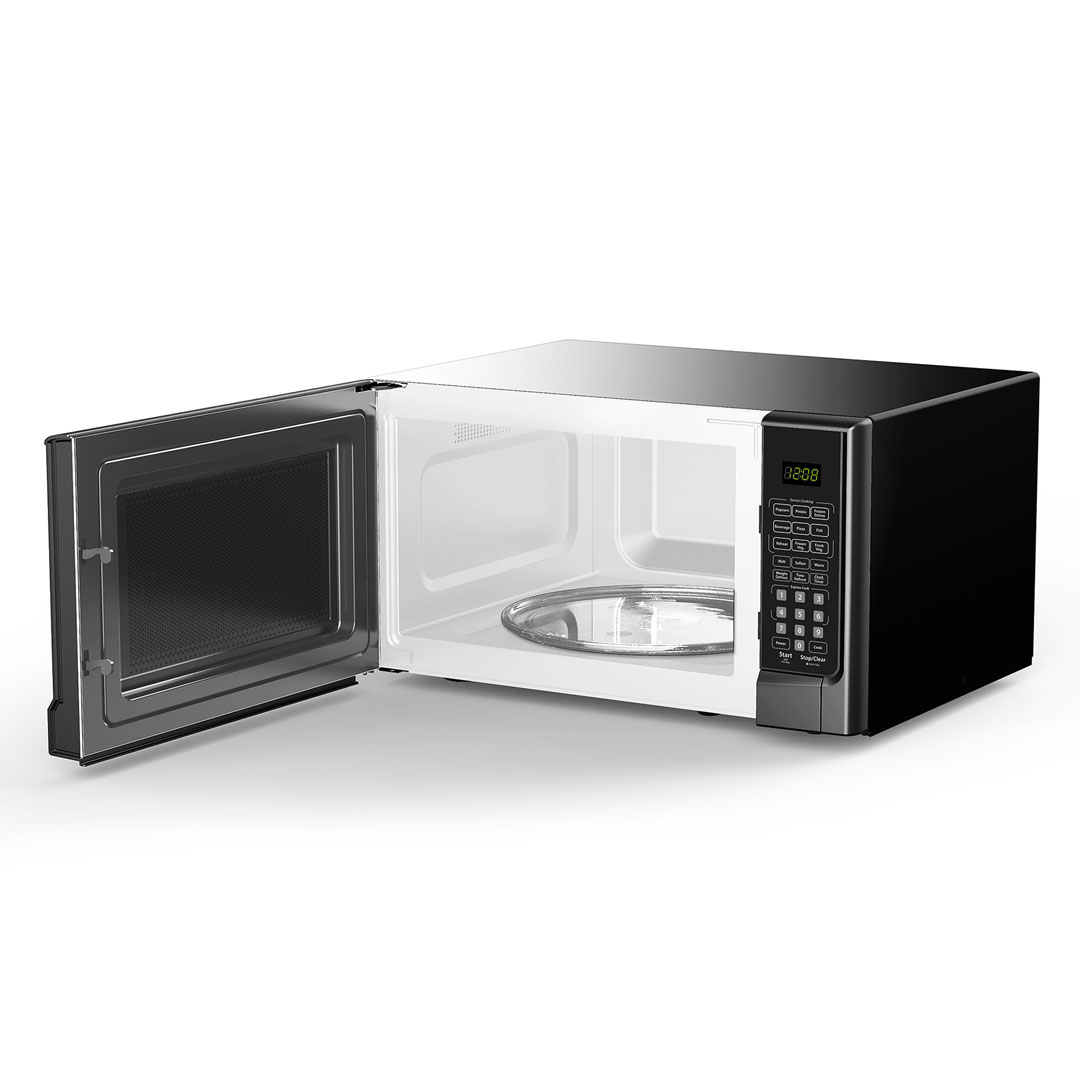 Cook all your favorite meals quickly with Danby’s 1.4 cu. ft. microwave with sensor cooking controls. Available in black, white, or stainless-steel, this stylish model can accommodate large dishes and plates. Danby microwaves are well suited for dorm rooms, offices, cottages, or kitchens. With 1000 watts of power, this model comes with 9 sensor cooking control options: popcorn, potato, frozen entrée, beverage, pizza, fish, reheat, frozen vegetable, and fresh vegetable. It’s easy to reheat lunch or dinner with the sensor cooking function that turns off the microwave at exactly the point when cooking or reheating is done. The one-touch auto defrost option simplifies your cooking needs and the express cook buttons provide 1-6 minutes of cooking time. The child/control lock-out option guarantees a safe environment for your child!