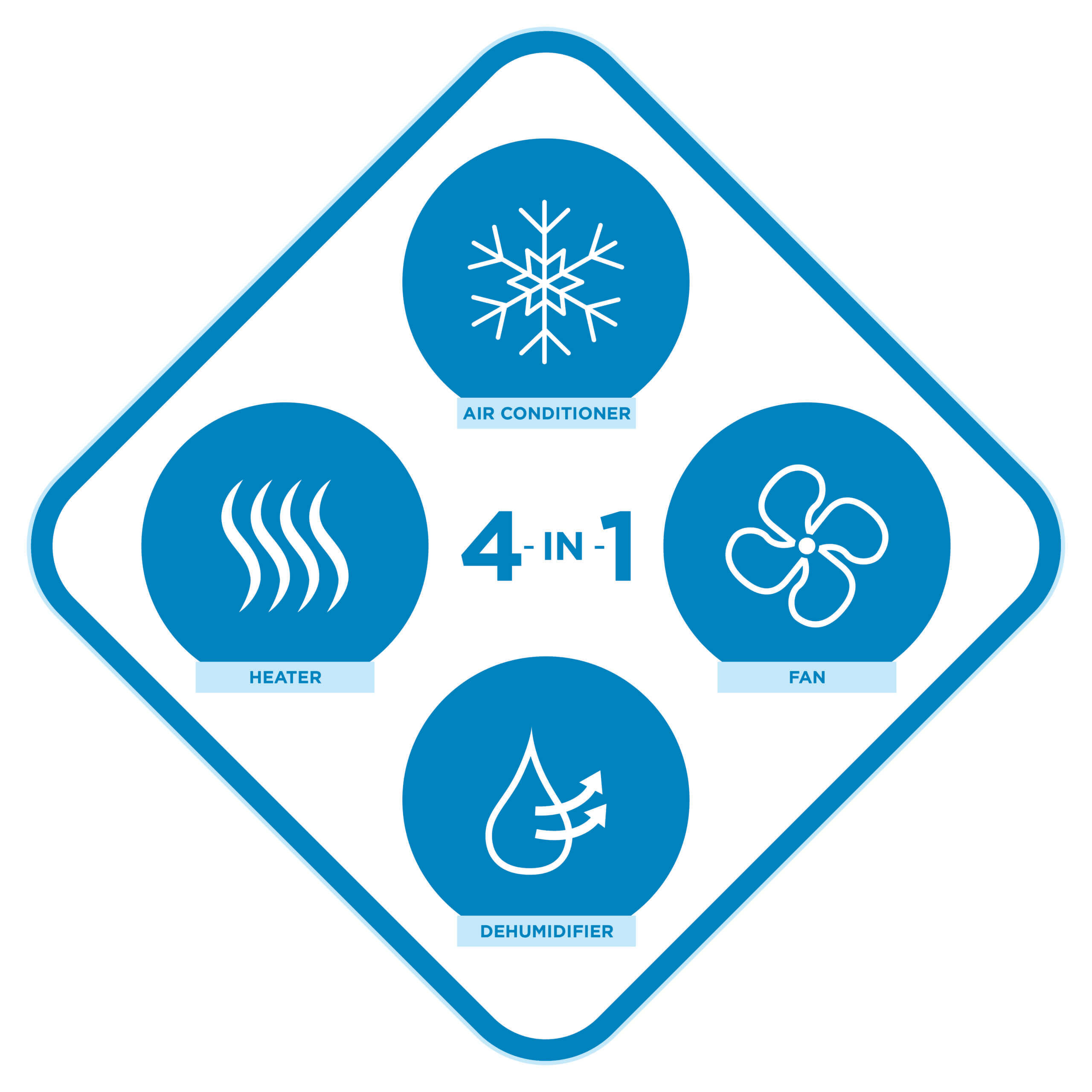 This product has been discontinued.- Convenient 4-in-1 design: air conditioner, fan, dehumidifier, and heater